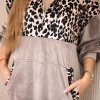Te presentamos este vestido de terciopelo con motivo de leopardo. El vestido tiene una cremallera en el escote y un bolsillo en la parte delantera.