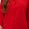 Esta blusa oversize de corte holgado garantiza ligereza y libertad y, gracias a su versatilidad, es una opción perfecta para muchas ocasiones y combina bien con diferentes prendas. Los botones facilitan ponerla y quitarla y permiten ajustar la profundidad del escote.