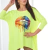 Te presentamos una blusa súper oversize con bolsillos. La blusa lleva un estampado de labios con los colores del arco iris en la parte delantera. La blusa está hecha de material de alta calidad.